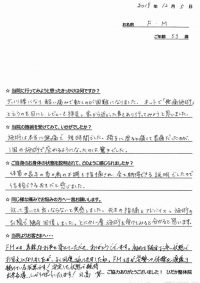 放っておいても良くならないと実感しました。先生のアドバイスと施術のおかげで随分回復しました。とにかく1度施術を受けてみると分かると思います!